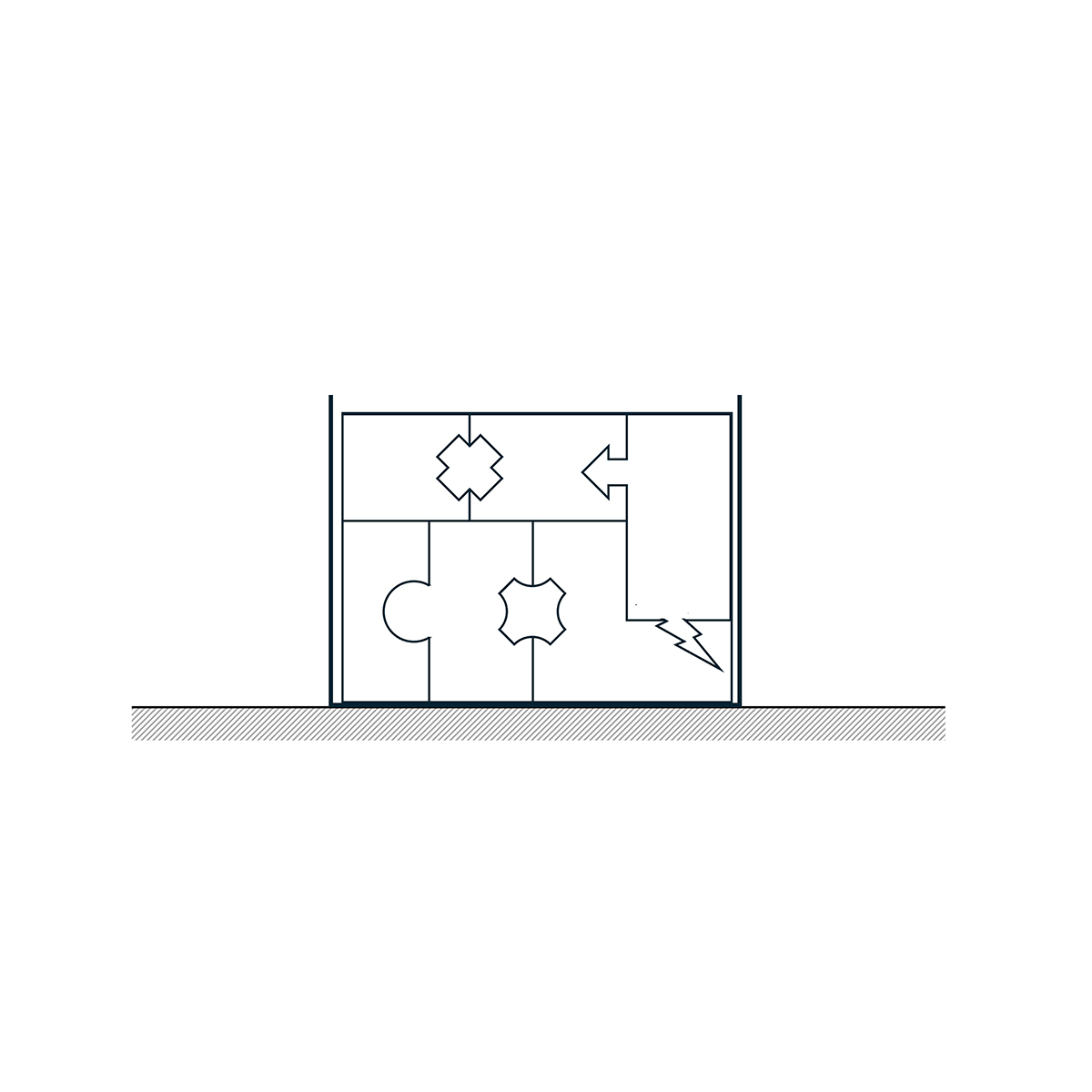 —But now, imagine that instead of marbles we would have assembled different forms, interlocking them to fill the space of the box. Something like this: