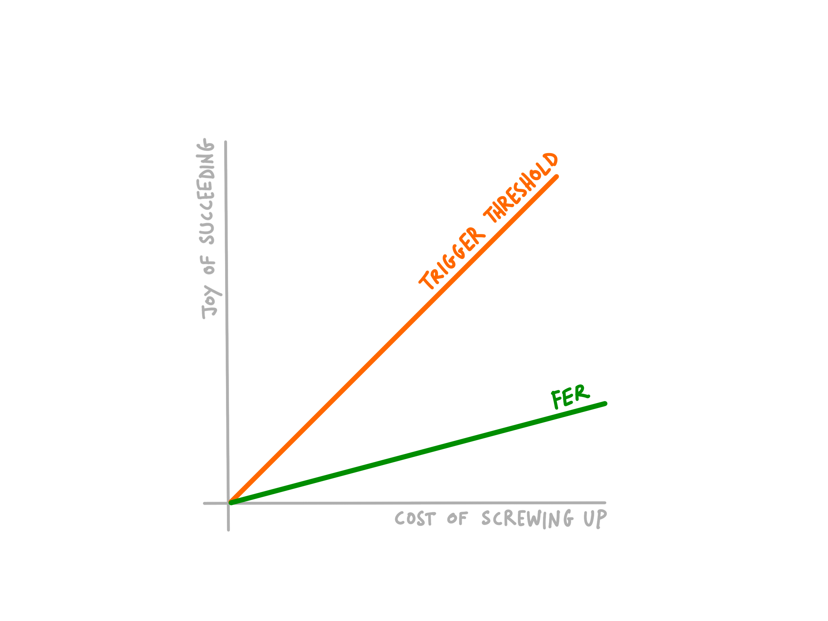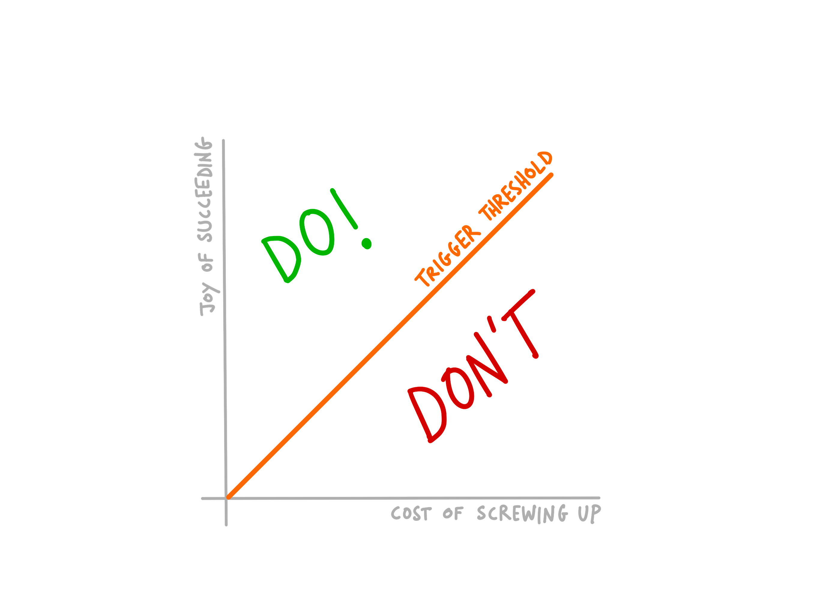 Let’s call this the trigger curve. It defines the threshold where the joy of succeeding outweights the cost of screwing up. When that happens, I move; otherwise, I don’t.